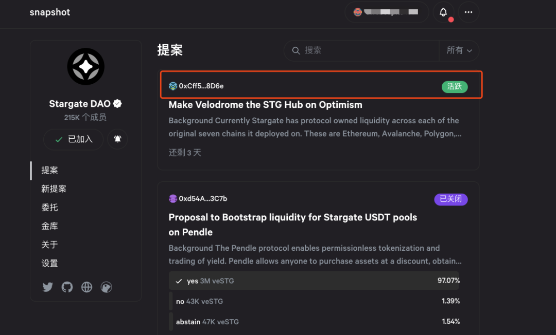 5.4 打开https://snapshot.org/#/stgdao.eth 准备投票 有活跃状态的提案代表可以投票,我们随便点击一个活跃的提案