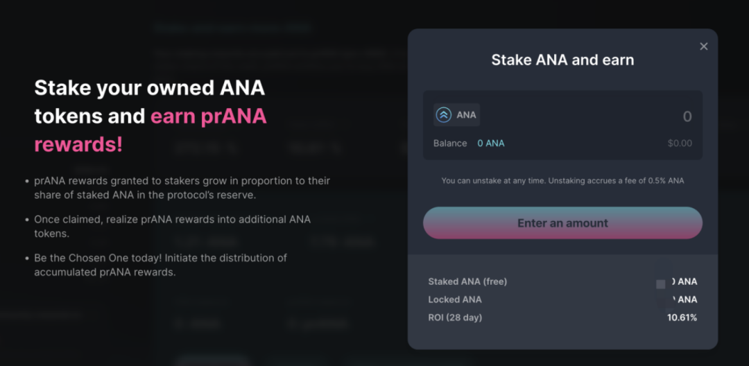 再将购买到的 ANA 进行质押,从而完成循环质押