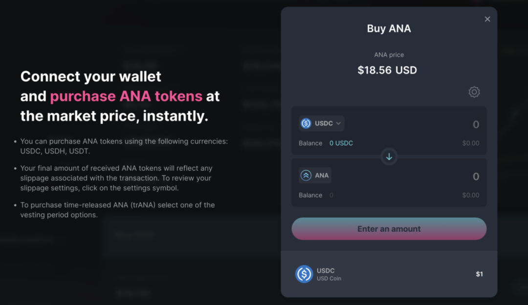 trANA:ANA的折扣代币。trANA是ANA的折扣购买形式,按照时间线型解锁,根据市场需求进行供应。