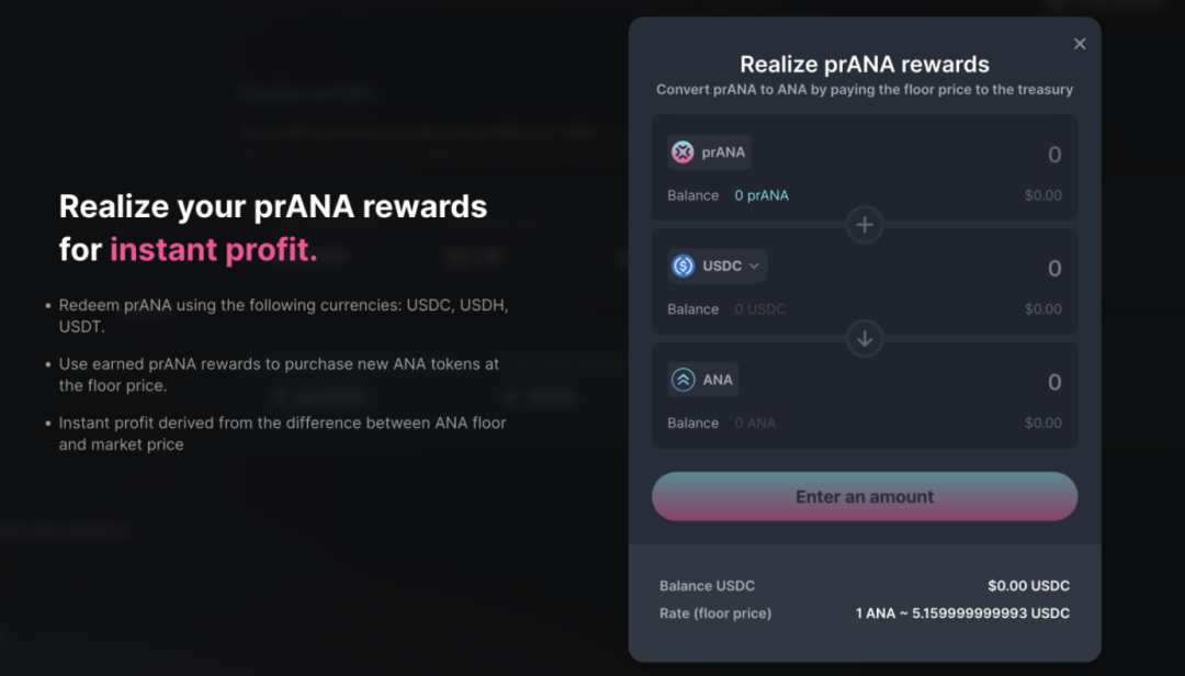 只需要支付 ANA floor price 即可将 prANA 兑换为 ANA