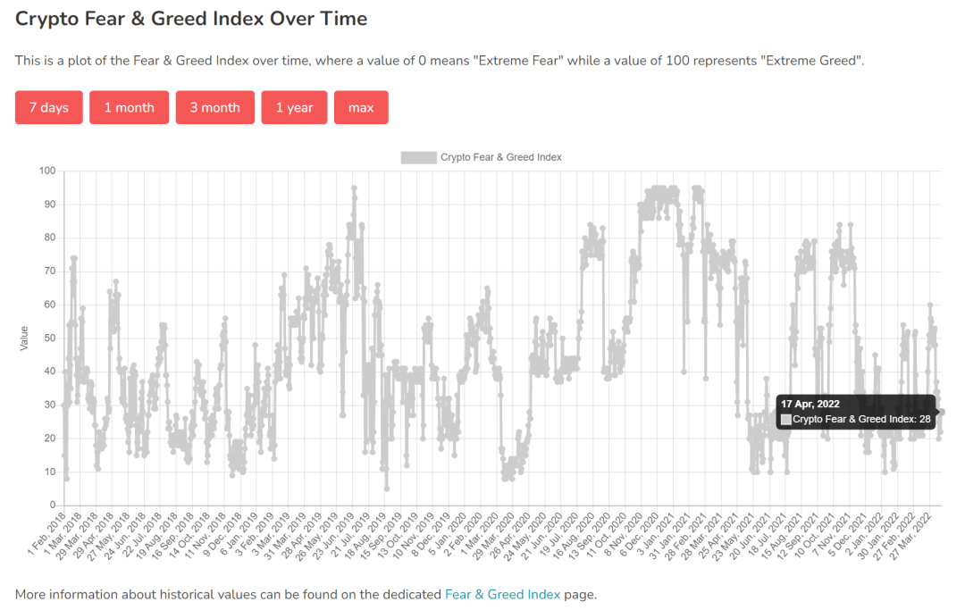 加密货币恐惧与贪婪指数:28(恐惧) 图片 (历史数据:10左右可以抄底,20左右可以定投)