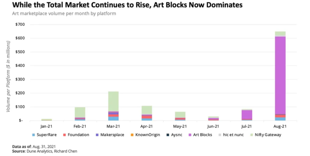 NFT 版税很容易比传统艺术家货币化系统提高 10 倍,几乎每个艺术家都在研究如何发行 NFT。随着 Art Blocks 和 Foundation 等新平台加入新的艺术家和收藏家,数字绘画的乐趣一直持续到夏季。