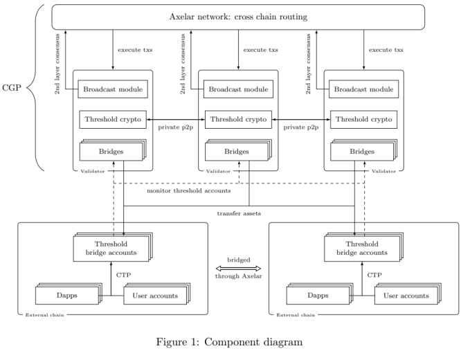 在整个过程中,Axelar网络在高层次上充当了去中心化的跨链读写神谕,CGP是链间的路由层,而CTP是应用协议。