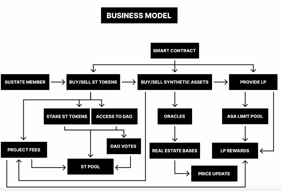 Sustate Finance is a DeFi app that provides access to real estate investing using synthetic asset technology, which carries the full characteristics and exact value of a property in a certain area and is updated in real time.