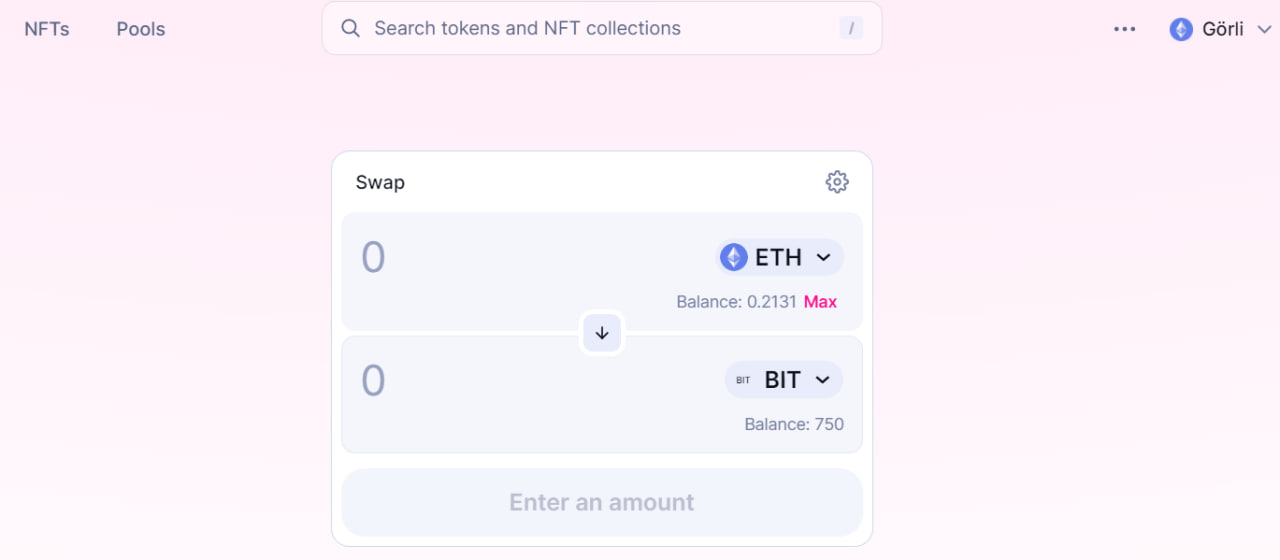 - Now go to Uniswap and swap the test $ETH for $BIT