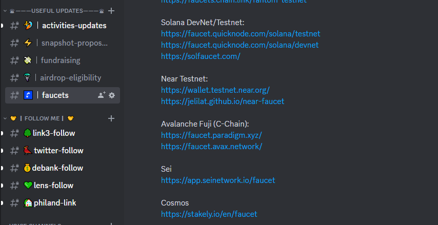 You can find a list of the faucets in our Discord