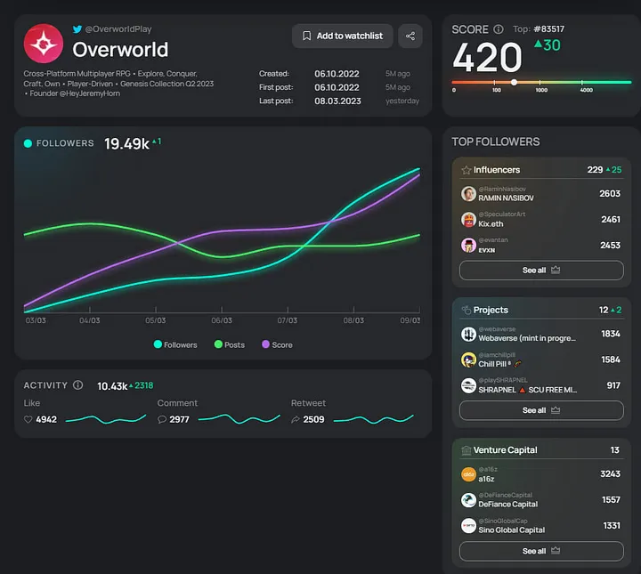 And thirdly, at the time of writing there is a competition in which you can show your talents and show all that you know how to create and get a Whitelist for the first NFT mint. More details can be found at the link - https://twitter.com/OverworldPlay/status/1633844651731075073