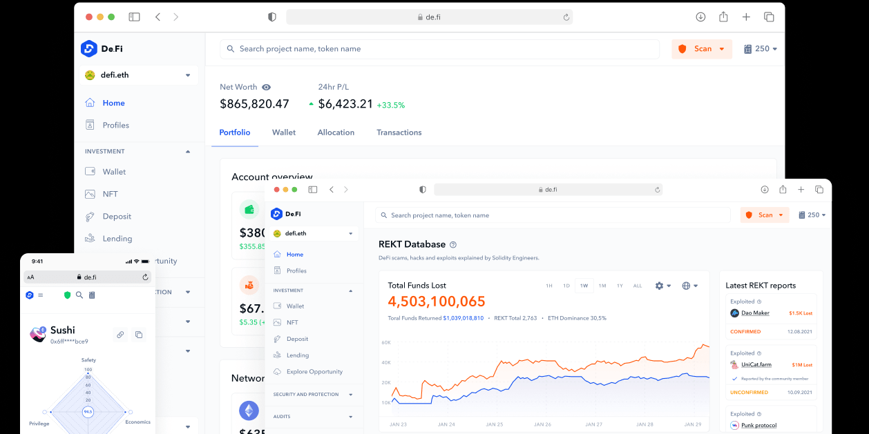 De.Fi是一个致力于将去中心化金融(DeFi)带给广大人群的项目。其使命是确保任何人都能够充分利用Web3金融革命,无需担心受到威胁,自信地进行投资。类似于DeFi领域的"Robinhood",De.Fi旨在成为DeFi的先驱者,突破传统金融界的限制,实现更大、更优的发展,不受国家金融管制和传统技术的束缚。