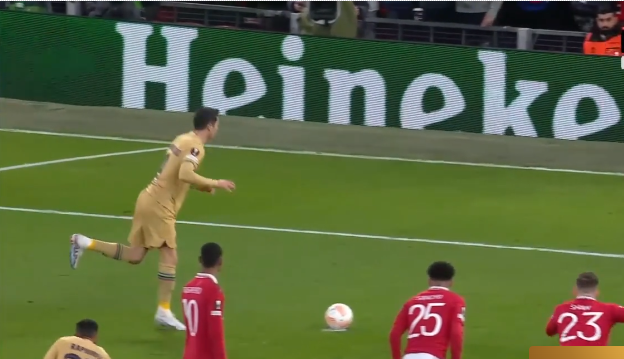 "Barcelona" spent so much time at the gates of others that the earned penalty should not have been surprising. Although it turned out very disappointing for Manchester United. Bruno Fernandes held Balde's hand a little when he was on the corner of the penalty area with his back to the goal. There was no danger for De Gea's goal to foul.