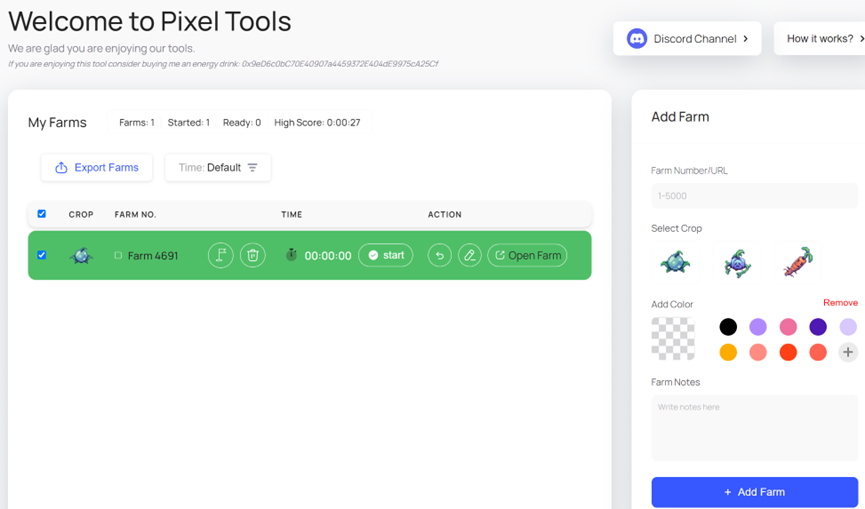 土地的话,可以自己买,但好像目前地板价比较贵,可以找地主空闲的土地去种植,土地找寻方式一个是游戏网站后面+/farm+土地编号,另外官方dis群里有专门的栏目,地主们会发土地链接和费率。