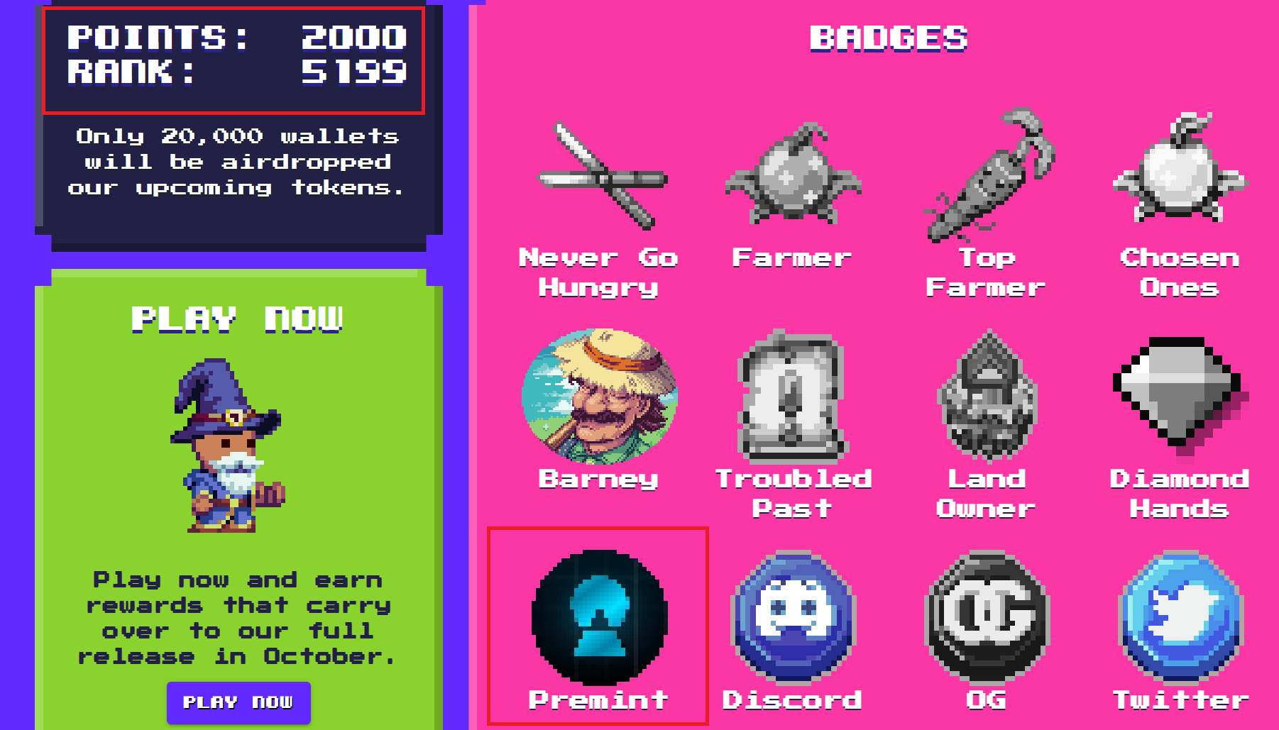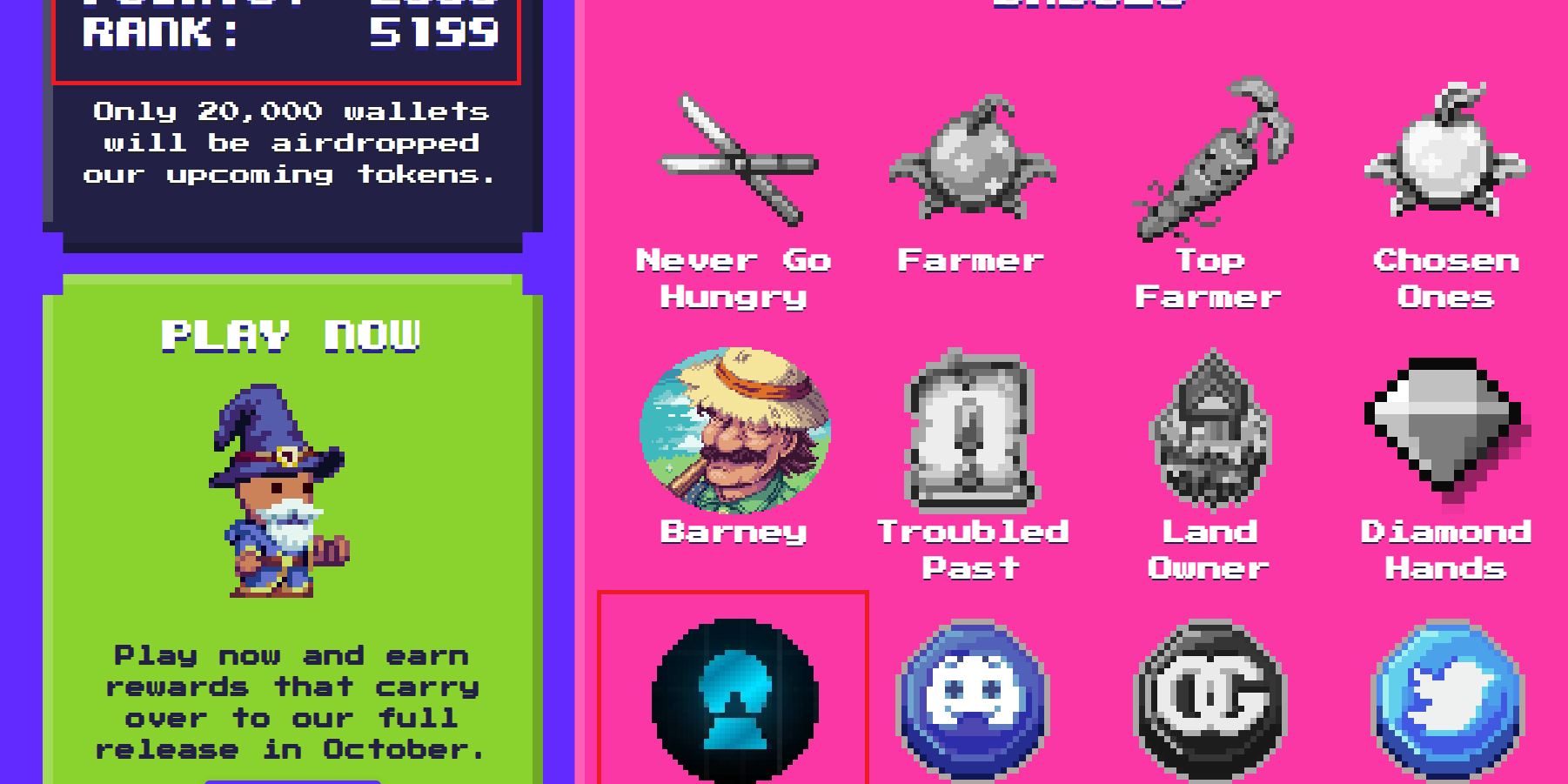 大家好,我是佩佩,像素农场并不是一个新项目,之前沉寂了一段时间,团队也做了一些调整,然后现在有个活动是积分排名前2万名的玩家可以在10月份获得空投,这个我看了下,目前来说还不是太卷,可能预期不是太高,不过考虑到任务还算简单,虽然是以太链上的游戏,但没有gas成本,且可以从0入手,做一下也无妨。