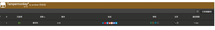 在出现页面中,右上角选择“已安装脚本”,即可看到安装成功的翻译机: