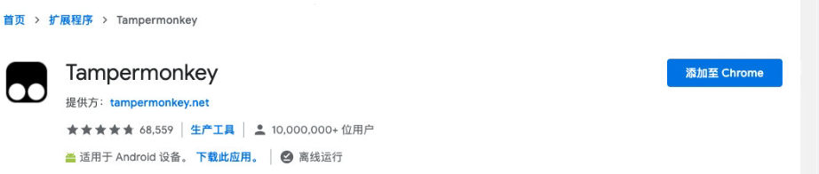 访问谷歌应用商店,搜索Tampermonkey并进行安装。