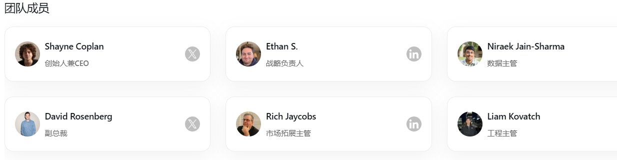 Polymarket 的核心團隊成員均為歐美背景,具有豐富的區塊鏈和金融領域經驗。創辦人 Shayne Coplan 自18歲起便參與區塊鏈項目,行業經驗豐富,而且是國際知名高校紐約⼤學計算機專業出身,並且有過往的成功項目創業案例。