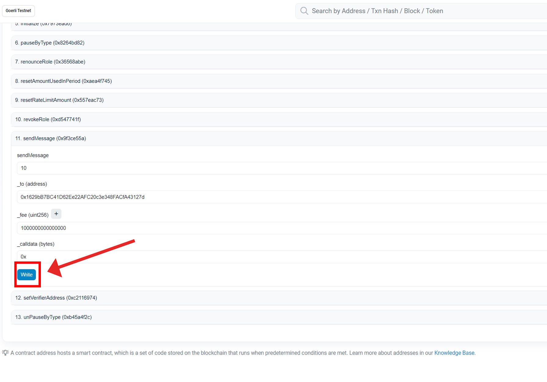 Click the "Write" button and follow the on-screen instructions to sign the transaction with your linked wallet.