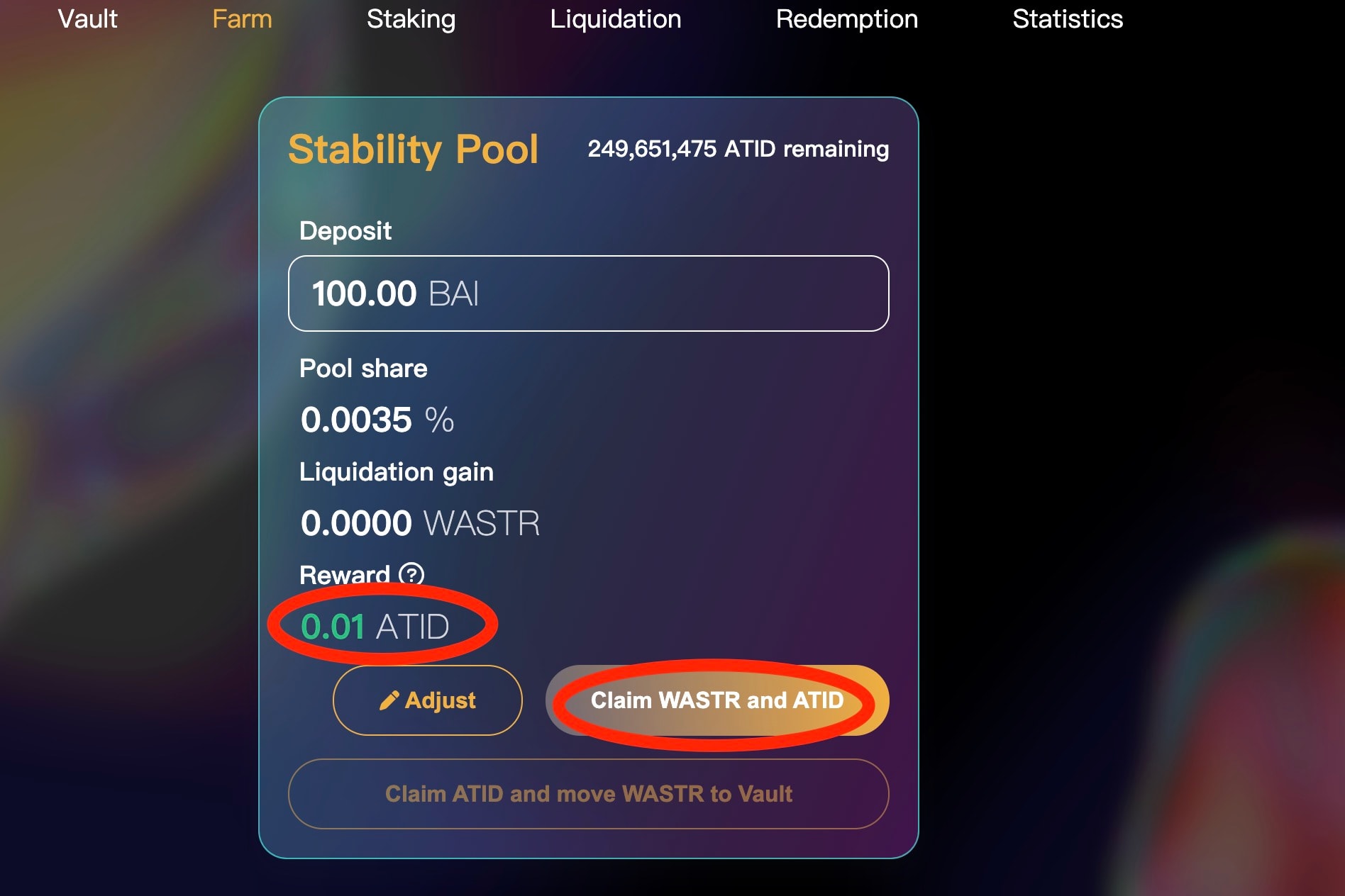 AstridDAO 提供市场上最好的借贷条件。借入 BAI 会收取少量一次性费用,而不是高度可变的利率。*发布时仅支持 ASTR。能够立即以面值赎回 $BAI 以换取抵押品(即 1 BAI 兑换 1 美元的 ASTR),并能够立即从稳定池中清算抵押不足的账户,将 BAI 完全与美元硬挂钩。