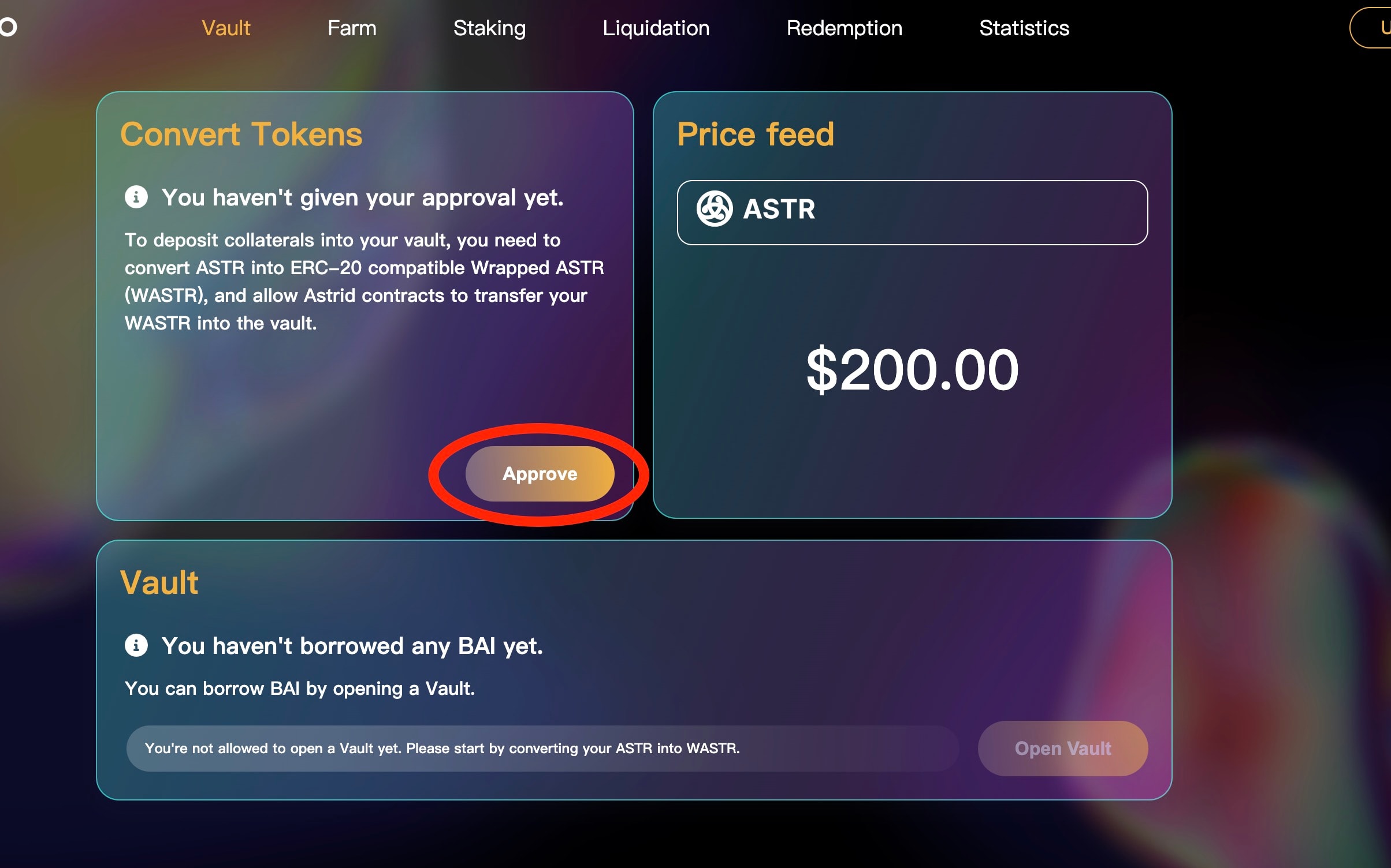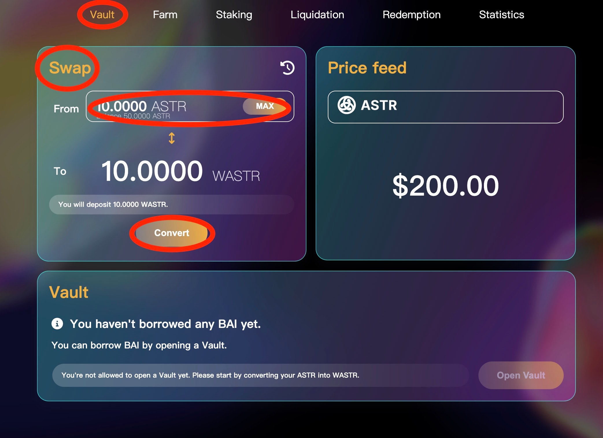 4,然后在保险库的交换里面转换一些代币并进行钱包确认。