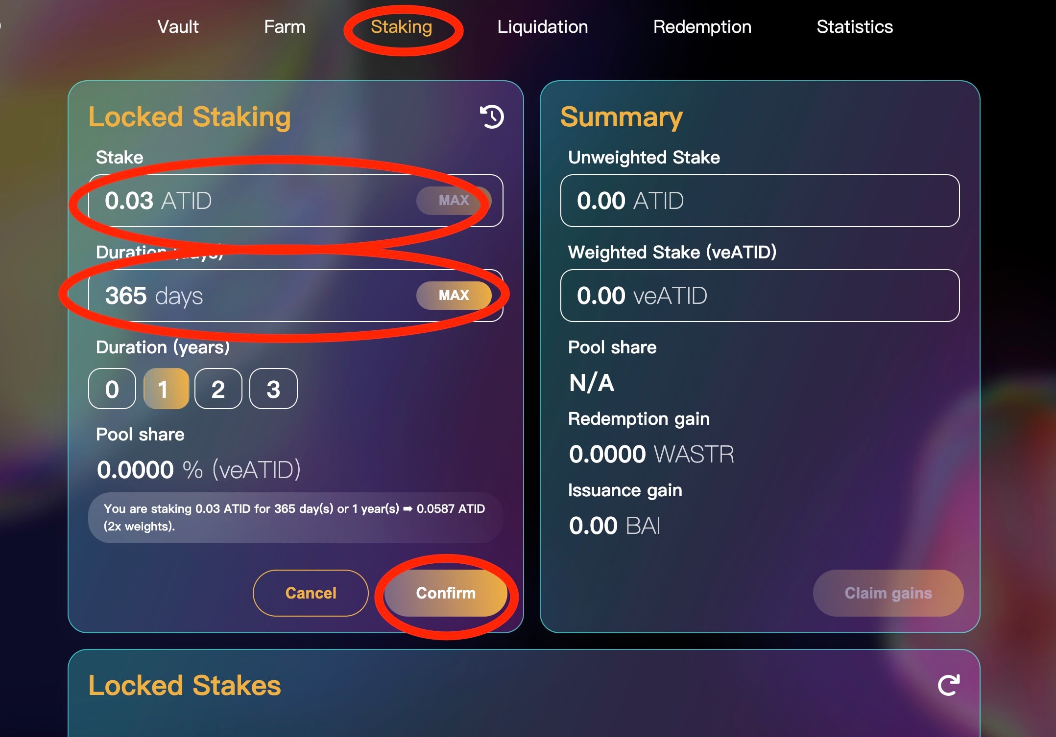 8,来到质押页面,选择金额和天数并确认,完成后在下面可以看见。