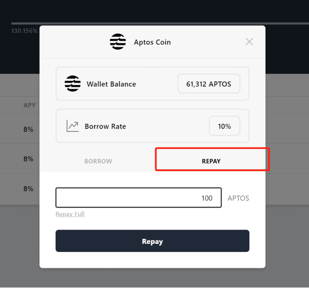6、在出现borrow的界面的时候有个repay,这是还款,也一起交互一下。