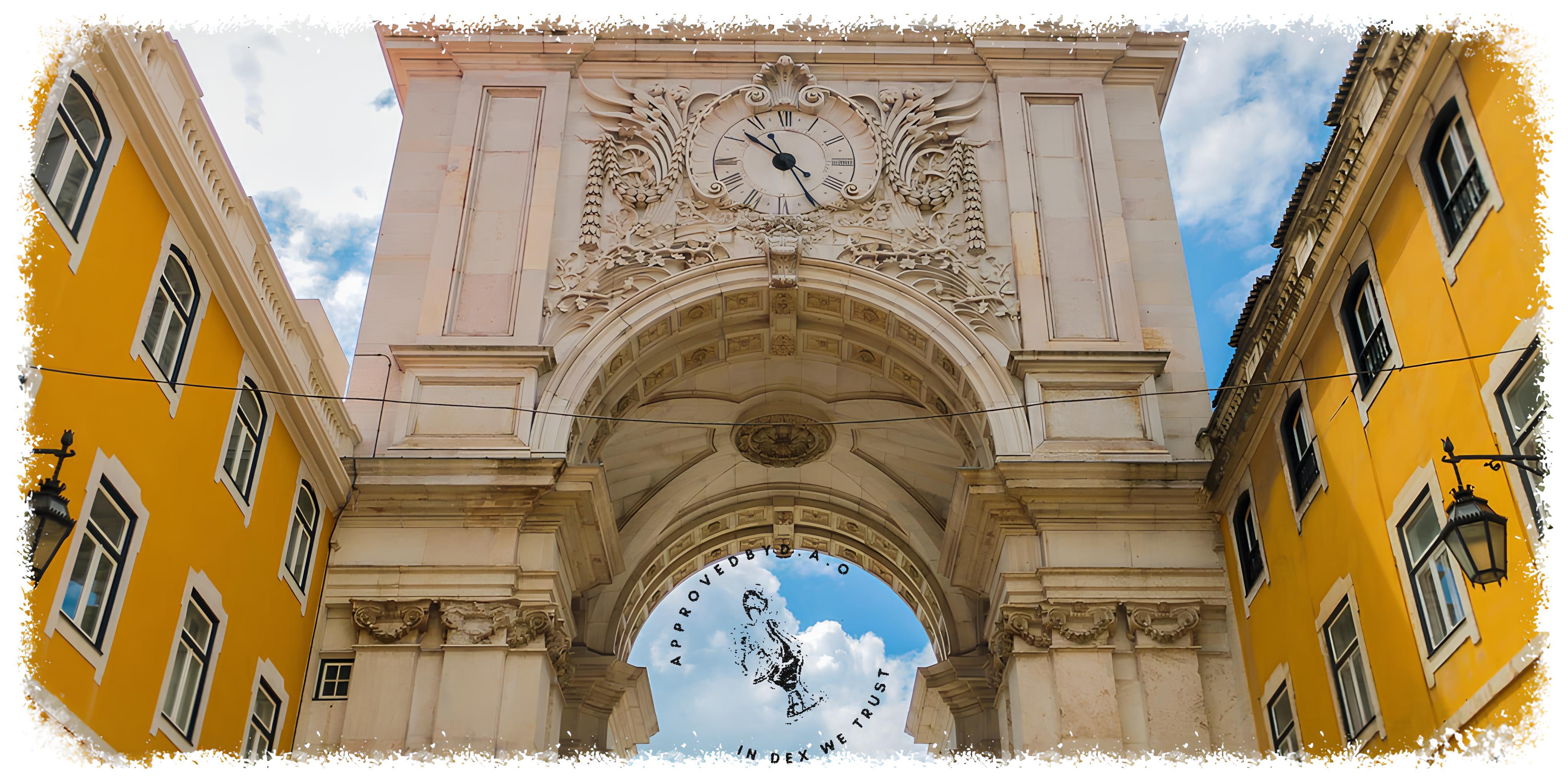 The text inscribed at the top of the arch refers to the grandeur of the Portuguese Empire and the discovery of new peoples and cultures. VIRTVTIBVS MAIORVM VT SIT OMNIBVS DOCVMENTO.PPD “To the Virtues of the Elders, so that it may serve as a teaching to all. Dedicated at public expense”.