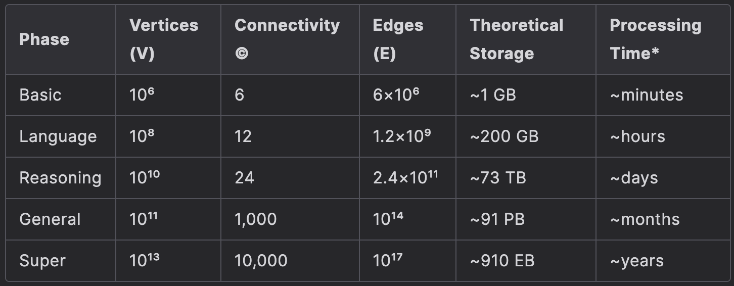 This SWAG provides a crucial insight: while general intelligence appears to be achievable by humanity given the current state of engineering, reaching superintelligence requires significant advancements across multiple disciplines. The staggering computational and storage requirements for superintelligence, as estimated by CFT, highlight the need for breakthroughs.