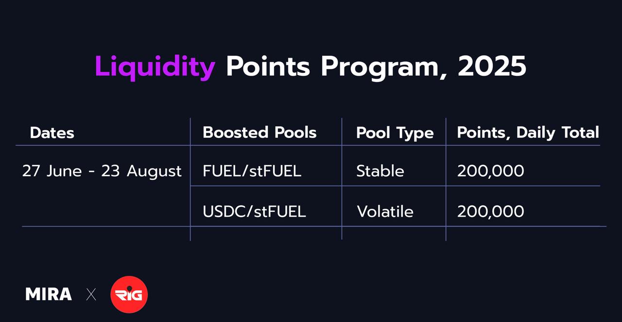 The current program is aimed at incentivising liquidity on MIRA and bringing a better trading experience to Fuel. More updates on the MIRA Liquidity Points Program to come! If you have any questions or feedback, don’t hesitate to reach out to our team on Discord. Follow our X not to miss out on any news!
