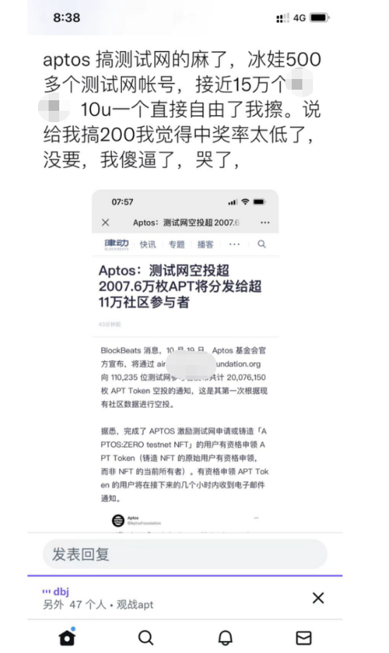 撸空投有很多种玩法,区块链公链在没有上主网之前需要搭建很多验证节点或者需要更多的用户参与交互测试,只要你在早期对该项目有过或多或少的贡献等到项目上主网都有机会拿到该项目的Token。当然你的参与交互的号越多你可能拿到的Token就越多,怎么批量撸呢?鸟哥这边都是自己的开发团队通过自己开发的脚本自动化批量撸,但是不是所有环节都是自动化的,可以省掉一半的工作量,感兴趣可以跟鸟哥聊聊。NFT的白名单也属于空投范畴,很多NFT的项目方会给参与互动和社区贡献者白名单权限,拿到白名单就可以mint一个该项目的NFT。