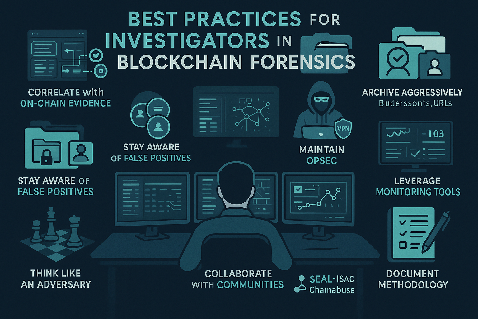 Collaborate with Communities – No investigator can cover the entire threat landscape alone. Networks like SEAL-ISAC, Chainabuse, and independent investigator groups provide shared intelligence and peer validation. Collaboration strengthens individual investigations.