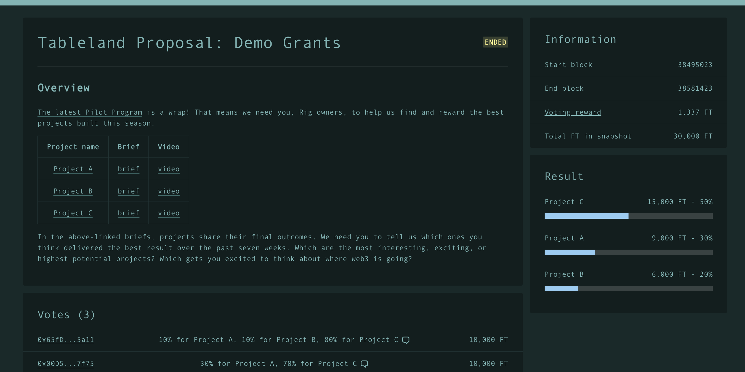 We were already using community votes in various ways within the Tableland ecosystem, and Rig holders were our primary voters, so we decided to start there!