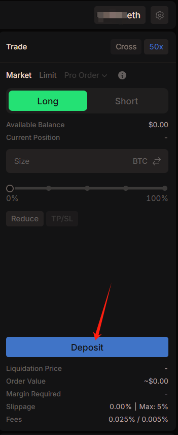 完成后,重新加入主页,在右侧点击 Deposit 按钮,如下图。