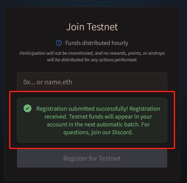 粘贴你的钱包地址,点击上图的箭头位置按钮。完成测试网注册,可能会有一个真人认证环节,你按照提示完成即可。