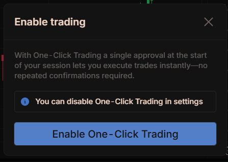 让你开启一键交易功能,你当然也可以以后关闭。开启后,会让你体验到交易流程的丝滑感受,没有那么多钱包签署确认环节了。