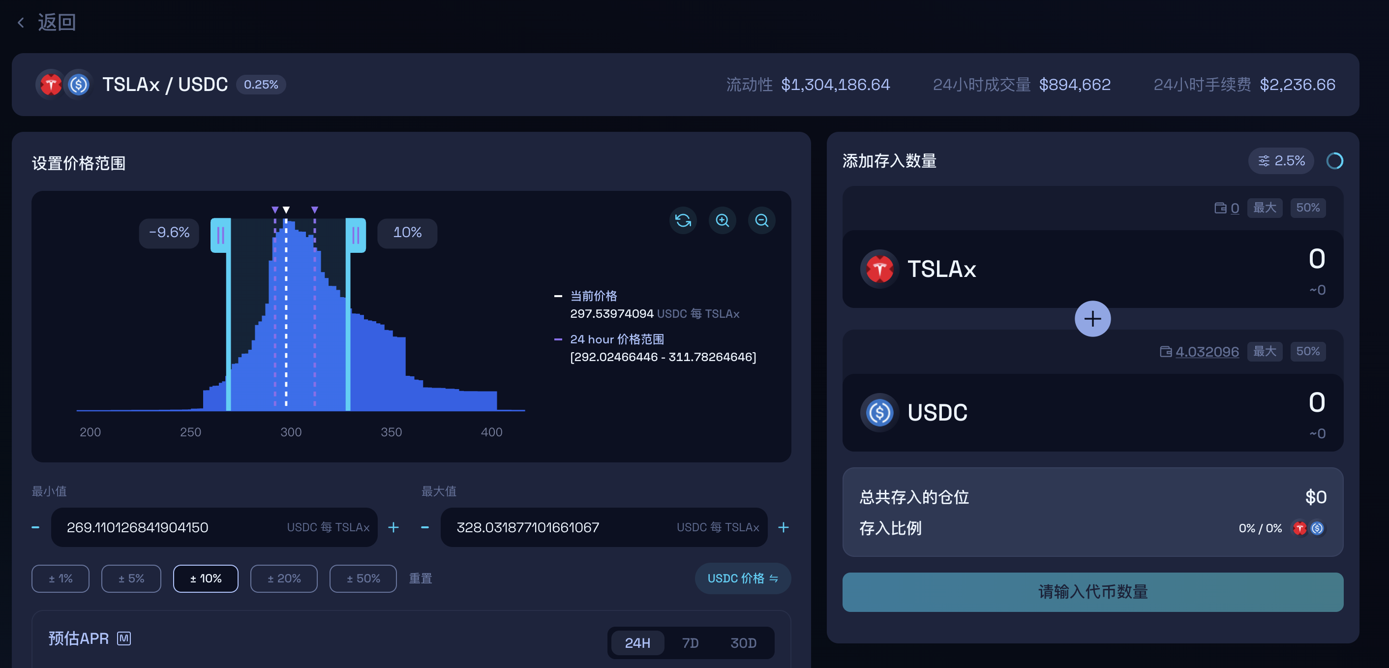 目前,像 AAPLx、TSLAx 等美股代币已在 Solana 链上获得初步流动性支持,可在 Raydium 等 DEX 上进行 24/7 交易。这也意味你可以在这里为 TSLAx 提供流动性,赚取手续费。