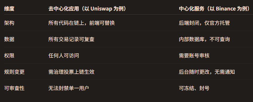 核心业务逻辑链上运行的协议,哪怕前端失联,仍能通过 API 调用、第三方前端继续正常使用;
