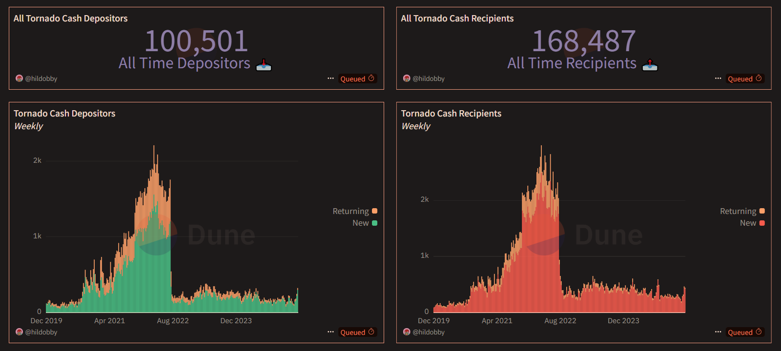 总计已有 100,501 个地址 向 Tornado Cash 存入过资产;