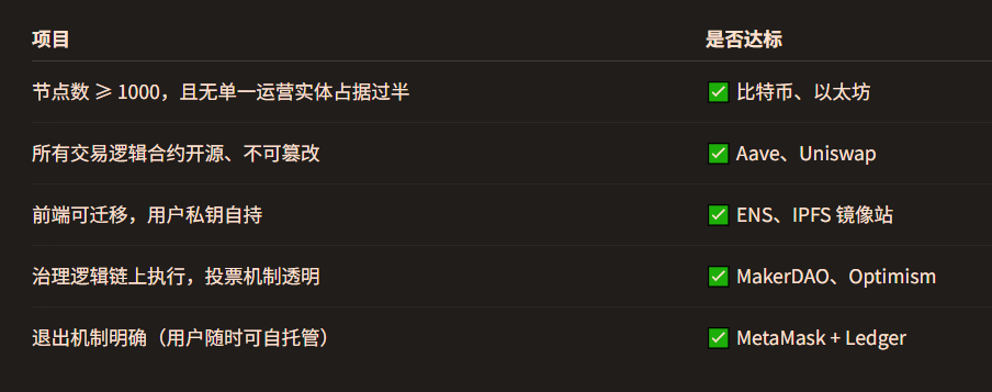 那问题来了,我们怎么判断一个系统是不是“及格的去中心化”?