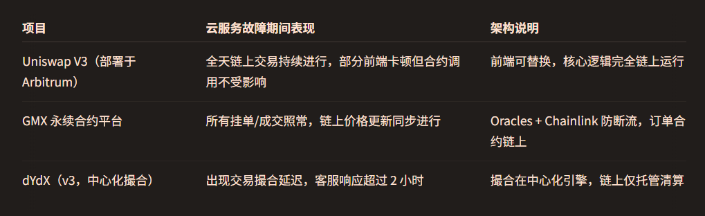 那一小时,挂单失败、订单卡死、资产冻结,链上金库就像被电子门锁封住,**没人能打开。**即使区块链网络一切正常,只要这些关键业务逻辑仍托付给中心化服务器,你就等于把命门交给了“别人家的插座”。